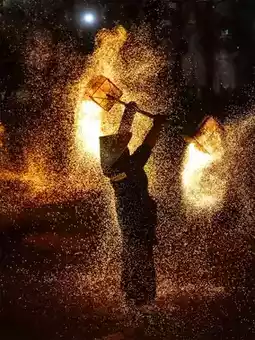 ✅ Fire Dance & Fire Pot Show: At Huilong Island Square, thrilling fire performances offer a stark contrast to daytime tranquility.