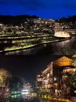 Accommodation recommendations: Highly recommend staying overnight in the scenic area! Qian Academy Hotel has a prime location, with high-floor rooms overlooking the entire village at night; Miao King Hotel is located in the heart of the resort area, full of Miao cultural elements; Sanlang Inn’s riverside terrace rooms offer window views of rowboats gliding through the ink-wash landscape.