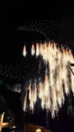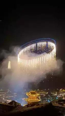 The most anticipated part is the tech fireworks segment, where 300 drones and fireworks machines ascend simultaneously, sequentially forming shapes like "Silver Wave Falling Leaves," "Waterfall Meteor," and "Gate of Time and Space," blending ancient cultural poetry with modern dazzling effects.