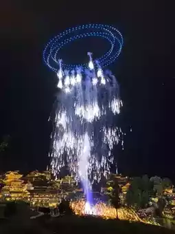 ✔️ Night light show + drone fireworks show, hundreds of drones form National Day themed words in the night sky, combined with music fountains and flame effects, a visual explosion