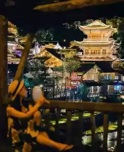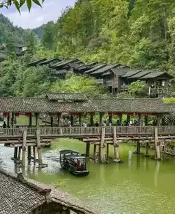 Every corner here is perfect for capturing beautiful moments. Huilong Island overlooks the "Three Corridor Bridges," which under the lights resemble an ink painting; Yalu King Corridor Bridge offers terraced pastoral views by day and a dreamy light show by night, making it an excellent choice for ancient-style photography; the "Wujiang Village" projection at Taiyi Pavilion is unique, perfect for stunning shots; the colorful fabrics fluttering in the wind at Heping Dyeing Workshop create a magical atmosphere; the stairs at Kuai Reading Bookstore provide a high vantage point, with the full view of Wujiang Village framed by red maples, layered and artistic.
