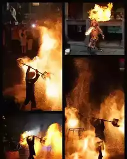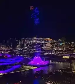 When night falls, Wujiang Village dons a dreamy attire. The Wujiang Star Music Fountain Show is a visual feast; when the lights come on, fountains dance to the rhythm, intertwining with reflections on the river to form poetry. The brilliant colors paired with melodious music transport you into a fairy tale world. Hundreds of drones perform aerial shows that amaze, sometimes transforming into mythical scenes, sometimes shifting into ethnic totems, narrating ancient stories in the night sky. The intangible cultural heritage bamboo rafting performance is lively and graceful, with performers stepping on bamboo like water ballet, showcasing the charm of traditional skills. The clash of iron flower fireworks and floating river lanterns is romantic; fiery iron flowers bloom in the night sky while lanterns drift downstream, perfectly blending traditional charm with a romantic atmosphere.