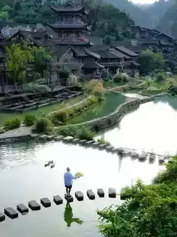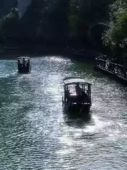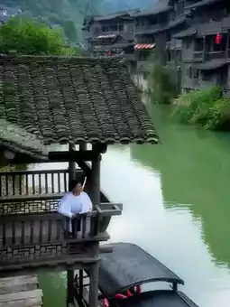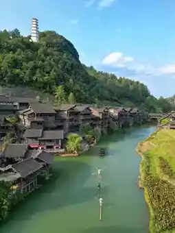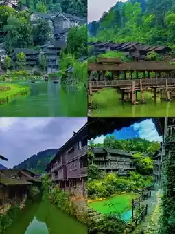 Take a rowboat, the emerald river ripples beneath the boat, and the stilted buildings on both banks reflect in the water.