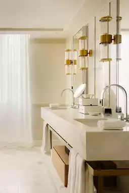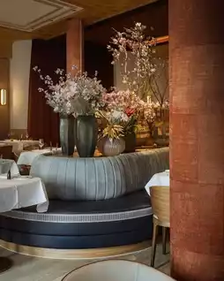 Mandarin Oriental Savoy, Zurich - TRISTAN AUER: Tristan Auer (renowned French designer) incorporates Zurich's harmonious and rustic natural environment. The interplay of gray lines creates graphic patterns and evokes emotional connections, echoing the ancient architectural details: travertine, grand staircases, and time-honored woodwork... all redesigned and integrated with new decor. The subtle transparency between the lobby and the outdoor cityscape allows the spaces to interact and coexist harmoniously, creating a seamless and vibrant atmosphere.