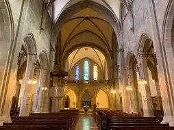 "A church famous for its fantastic stained glass created by Marc Chagall.
