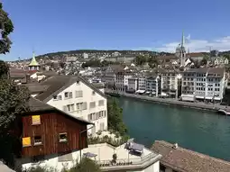 The view of the old town's streets, churches, and mountain backgrounds seen across the Limmat River is truly spectacular. ✨