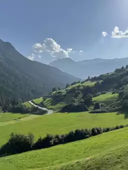 From Lugano we were riding on the Bernina bus to Tirano (3 hours). Had a little time to eat and sat in Bernina express. The train had a fantastic route but the seats were uncomfortable and there was very little legroom 4 hours). Came at Chur and walk around the town. Stayed at Hotel Krone Churwalden. Really liked it, also a stunning balcony with a view of the mountains.