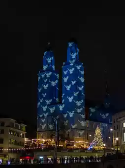 Zurich takes on a uniquely romantic charm at night. Strolling along the Limmat River, you'll see the city lights reflected in the water, with the silhouette of the Grossmünster Cathedral's towers standing out prominently against the night sky.✨