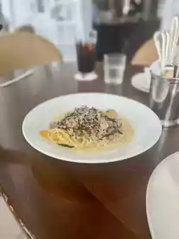 • Casual but authentic: The first floor is a café brasserie with a focus on ala carte dishes. You can also enjoy dishes that make use of seafood and Miura vegetables, as well as original cocktails.