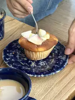 The baked goods are baked above the counter, so you can eat them fresh, which is great.