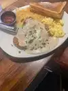 Loved the atmosphere / ambiance. Not impressed with the food. Everything I tasted had garlic…lots of garlic…too much garlic! I ordered a side order of biscuits and gravy. Garlic! So I could not eat it. My friend got a full breakfast - omelette and hash browns. I tasted the hash browns. They would normally be okay with some garlic, but again…way too much. The service was fantastic. We sat at a table, but the seats at the bar were big and cool.