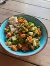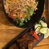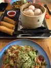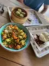 Awesome outdoor dining with pop up Asian options . Visited this great venue with a bunch of Asian options ranging from ramen, baos, dumplings, poke and various fried rices I got the citrus og bowl customized with rice edamame tofu spring onions and couple of sauces on the side Then added the veg dumplings and spring rolls to finish the meal Outdoor dining with music playing was amazing as well Must visit along with the super cool vinyl record shop upfront