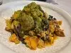 Ordered the grilled octopus, zucchini chips, and mussels. The grilled octopus was okay but a little fishy. The chips were very good and the mussels were also quite good. Our entrees consisted of porter house steak, risotto, and salmon as well as sides of mushrooms, spicy sweet potatoes and Brussel sprouts. The steak was mediocre. The salmon was mushy. I sent it back. Overall, the food was bland.