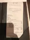 We were looking forward to visiting the restaurant, having had a good food experience with delivery. Were we ever disappointed. The arugula salad and calamri started off ok (calamari was actually quite good) and we then ordered the bone-in rib eye to share. It looked great when it came out, but the first bite put us completely off. There was absolutely zero seasoning. The steak was beyond bland and was as if we were biting into the cow. The side mushrooms were decent, but the sauteed spinach was bitter and sour, rendering it nearly inedible. We tried adding some mustard to the steak, which helped, but by that point I had lost all interest in it. The waiter did offer to replace it, but I didn't have the patience (we were already an hour into dinner) to wait another 30 minutes for something else to be fired. Tried the creme brulee for dessert, which wasn't bad. The highlight of the evening was the 2016 CabSauv from Stags Leap, which was exceptional. Waitstaff was ok, but not near the level of attentiveness that I have had in other steakhouses. As the steak is meant to be the centerpiece at 212 I can't give them more than a 2 as it ruined the entire meal.