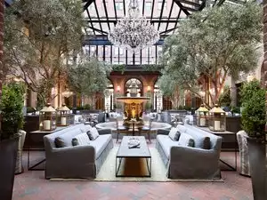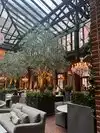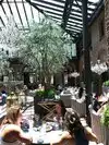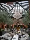 This restaurant is gorgeous. There is no denying that. Just a beautiful atrium for having some drink and food. It's an old brick building that is just so bright and airy given that glass roof in this restaurant. It was worth it for one meal, but the prices are so high, I can't see justifying going back there. $23 for a hamburger? Yikes. It might be worth it for a glass of wine or coffee, as those prices seemed comparable to other places, but the food was just outrageously priced, even for such a pretty location. It's very popular, and they don't take reservations. We had to wait 45 minutes for a table for two at lunch (and we thought that was reasonable). They have a really nice seating area (with many couches) for people waiting, and you can get coffee/wine while waiting.