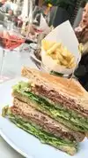 Arrived on a Sunday afternoon for brunch--and it was packed. We put our name in and walked around the beautiful building with a glass of wine. It did take an hour to get a table--but it was well worth it. -one of the most spectacular dining rooms I've seen--with dramatic wide sunlit glass-covered courtyard -great wine list, cocktails and champagne options -the club sandwich is amazing with thick house-made bacon and delicious fries served with aioli -all the furniture, dishes, glassware, silverware are restoration hardware--really high-end and adds to the experience