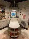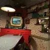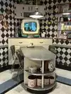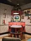Leap back into the 50’s with the golden age of black and white television and true family entertainment and cartoons. Vinyl chairs, retro tables and all the nostalgia to go along with it. Friendly staff that are attentive and helpful. Small menu but enough to keep you happy. Floats, shakes, deviled eggs, chicken pot pie and the sampler platter and your good to go.