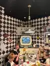 Food was not great...I was really hoping for that feeling of being a kid but it did not live up to my wishes. The service however was great and we thoroughly enjoyed the fact that our server scolded our son who is 16 from being on his walkie-talkie (cell phone) at the table and gave him some constructive games that he had to use his thinking cap on.