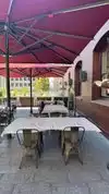 Prepare to relax & unwind just off market st in a quiet plaza, sometimes quality food trucks and outdoor seating. Cafe populated by international staff who attend to you most professionally Full bar, tea and espresso, and cafe society food. Beer on tap Step out of SF and step into European Cafe Life Regulars abound. Find your way off Montgomery, near Jessie and close to Market