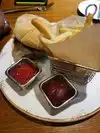 The service was outstanding. The food was interesting, I got a selection of meats and cheese that came with various jellies and condiments, it was very good! If you sit near a window you will great a good view of Michigan Avenue below. This restaurant is located on the 4th floor of the Omni hotel.