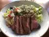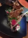The offerings on the menu were minimal and disappointing. The salads were bland. The Hangar Steak was tender and flavorful. The waitstaff seemed annoyed at requests of hot water and that we did not order dessert.