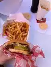 There are mainly cheeseburgers and fries. Order a regular cheeseburger, a double cheeseburger and fries, paid 22$, that's currently just under 19ā¬. The fries are good, the burgers are like the little cheeseburgers at MC Donalds, just dripping and muddy, and overpriced. Conclusion: Okay for fries, go somewhere else for burgers.