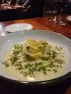 The ambiance is the very open space gives off professional and caring. My last minute reservation seated me front and center but I never felt rushed my first course as butter lettuce with lovely large chunks of bacon and pickle mustard seed that gave a delightful zing, my second course was a delicious lobster cappelletti with lobster broth - excellent and not overwhelming with regard to the pasta. The delicious dessert was a small piece of olive oil cake with honey berry mascarpone and sea buckthorn sorbet. I had to try it as the flavors were unique and it was the best Definitely a place to revisit