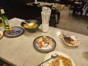 Excellent! Shared the Brisket rice (big portion) and the chicken dumplings. Also went back for the shrimp and another serving of Brisket rice. Great service. Good prices.