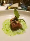 Halibut with an assortment of tomatoes in tomato water might not seem a great choice, but it definitely is! The crust on the halibut was as perfect as the cooking of this delicate fish. The parings are extraordinary, but worth trying. Every dish is a surprise of flavors.