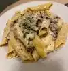 We did take-out here on our way home and both of us each ordered the large portion Campanelle (wild boar with pasta), and while we enjoyed it, the meat amount was a bit small in comparison to the pasta. The salad was also OK, and had an excellent dressing to accompany it. The amount of Campanelle in both portions was enough for two meals, so we enjoyed it again two days later. Perhaps it was because it was take out that it wasn't quite as good as I had hoped, but hopefully, we will soon be again dining IN the restaurant!