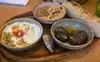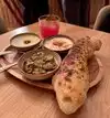 Yum - wonderful steaming hot bread with eggplant mezze and delicious tableside hummus! Excellent friendly service. The lamb with artichoke risotto and marinated black cod were great. Would recommend!
