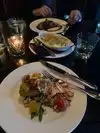 The food was fabulous. Not only the steaks but also fish can be highly recommended. Nice atmosphere and good service. Our waiter took a bit too long to explain the entire menu including drinks so we had to stop her as we are quite able to read. But I think she meant well. Highly recommended place - even though it is part of a hotel it has a really nice atmosphere.