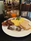 Drink choice: Ginger Sunrise which consisted of carrot, ginger, turmeric, orange. For my meal, I ordered the " Wagyu Flat Iron & Eggs" which has Wagyu flat iron steak, eggs (your way) and breakfast potatoes. Great customer service as well. My waiter was very attentive.