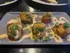 The spicy roll was not that spicyThe corn beard was sweet and a little spicyThe bread and jelly was good and large The pork and steak was cooked perfect. And dry aged around 30 days.