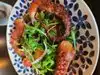 Happy Eating All! If you want to get out today and try some fantastic family traditional cooking, try Acu'. We were not a disappointed this evening grazing our way through their fantastic menu. Bacon wrapped stuffed dates - these should be outlawed or atleast not shared with others as you will want to horde them all to yourself. The watermelon salad and roasted peaches and burrito were fantastic. The fire roasted octopus was out of this world. Watching them cook it in the big pizza oven and then coming out sizzling was magnificent. You have to try the hand made pitas toasted in the wood oven. Then finished it off with a wonderful white chocolate bread pudding with a fig sauce. Even better was the family service. Thanks Karlo and family for a great experience, we will return for more.