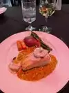 We ordered from their standard menu items and it was really good food. The wine list is small but adequate with a reasonable selection of reds and whites. The bread to start with was a little crusty which was just right. Both salads we started with were very good, Caesar Salad and the house salad which had artichokes and a really nice lemony dressing. The pepper crusted filet steak was prepared exactly how I asked (medium) and it was a really good cut of meat that was spiced with pepper just right (a lot). The trout with crab meat was really good too. The service was attentive. After our meal we were chatting as we finished our wine and we were given a small port to finish the meal which is a very French touch.