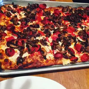 We came here because it was my brother in law's favorite pizza place in the city, and we weren't disappointed. We ordered a sausage square pizza and demolished the whole thing easily. We had great service and liked the atmosphere, and we were told how lively the area gets in warmer weather.