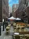 My fave pizza place in New York! Their pizza is brick oven baked and is delicious! The atmosphere outdoors is so fun, it's a pedestrian only street with lights, music and large tables that accommodate even bigger groups! I highly recommend it for locals and tourists who want the nyc experience!