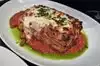 Located in Tivoli Village, Al Solito Posto is a great Italian restaurant that I'll be frequenting again soon... The ambiance and decor is contemporary, dimly lit and the vibe for a nice sit down dinner night. There's an attractive full service rectangular bar which I've visited previously to get drinks with friends. This visit was for dinner.. Beef Carpaccio - Here's the perfect starter. Fresh meat and veggies to get your appetite started but not too filling for your main dish. Papardelle Bolognese- Meaty, cheesey and delicious. This bolognese is one of the better ones I've had in a bit. Chicken Parmesan- Another Italian classic that's done well here at Al Solito Posto. Italian Rainbow Cake- moist and flavorful. This Italian dessert classic can definitely be shared by two people. All the dishes we had pretty hearty portions. The service met expectations for the price point. The noise is on the higher level when they're busy but won't disrupt your dining experience. If you're looking for a classy Italian resto with traditional dishes Al Solito Posto is a place to check out. Enjoy!
