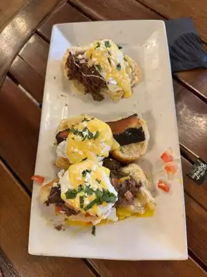 We had two breakfasts and one dinner at Alamo Biscuit Co & Panaderia, as it was steps from our hotel and on the riverwalk. I would definitely recommend it for breakfast, but maybe not for dinner. Breakfast was great. I got the french toast platter one day and the Blueberry Cream Cheese pancakes the second day. My husband got the brisket benedict platter one day and something else the second, but he loved them both. HIGHLY recommend anything with their brisket in it!! Service was attentive, prices were fair and the coffee was especially good. The servers at dinner time did not know what was going on and gave us wrong information about sides to the point that the chef came out to talk to us because whatever the server wrote down was not available. And, the margarita I ordered tasted like soap - yuck.