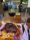 Terrible experience here. The waiter was very polite and helpful. Atmosphere was more for young kids to drink. Music is too loud. Location is pretty easy to find. Food looked good but our food was cold. Came out very late. We waited 1 hour for cold food.