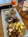 Stated off with a savory biscuit flight for appetizer ! Oh oh so good biscuits were fluffy and perfect tried the brisket Benedict and shrimp&grit both biscuits were dense and dry but still good. We will return