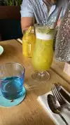 Natural lemonade, without flavor. Very expensive Colombian club beer The food is delicious but very small portion for the price. There are many better Colombian food places.