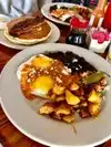Killer pancakes! Mexican breakfasts "Austin, Texas" style. Laid back atmosphere...great value for those on a budget. May have to "wait" a bit to get a table...Lots of dinner and lunch specials that depend on locally available ingredients..so, menu has a variety of special that change frequently. Basic chow - not high brow!
