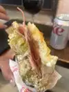 I am not sure how a video of someone from All’Antico Vinaio showed up on my feed but I am so thankful it did. The little place is the New York outpost from Italy. Even the couple behind me that are Italian mentioned that he went to two other locations in Italy and a sign I was at the right place. Line up are common and we waited about 30 minutes and worth the wait. Maybe 11-12 seat only inside but so many other places in the city to eat it anyway. You order at the counter when you see them making the yummy sandwiches. 5 persons were behind the counter and happily working! Even suggested not too make substitutions as they can like he said but would not taste as good. They definitely know what is best for you! A great sandwich start with the bread! So yummy and crispy and warm! You have 16 sandwiches you can choose from. I went with the famous La Favolasa (Sbriciolona, Pecorino Cream, Artichoke Cream, Spicy Eggplant) and was so yummy! My friend went for La Summer (Prosciutto Toscano, Mozzarella, Tomato, Basil) and also raved about it. We were able to get a seat and enjoy it on premises. It was a great experience and can’t wait to go back Regards Ronaldo