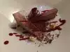 What a find! Inside a little alley way in downtown Miami are about 4-5 restaurants. A real find is Alloy! Very, very creative cooking in a nice comfortable restaurant with outside and inside seating. We had 2 appetizers - the duck gnocchi, a take off on Canadian poutine, and the foie gras with thinly sliced mango and a mango purée with, I think, chia seeds. Both were delicious and nice portions. Then a chocolate dessert - chunks of cold milk chocolate, piped whites chocolate and raspberry purée. Excellent! We will definitely go back and try the hamachi and the octopus. Both served beautifully, smoke pouring out from both!