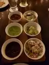 Variety of small dishes , mostly variation of Mexican classics with a modern touch. Marinated tenderloin, flautas, guacamole, tostadas. What I tried was not terrible spicy, hot sauces were available