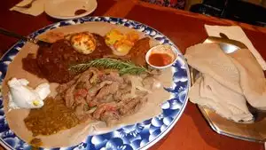 We had the vegetarian combo and a lamb entree. Well prepared and presented, delicious, portions quite sufficient. Finished off with Ethiopian coffee, which was exceptional. Place is tiny, squeaky clean. Holds up to any Ethiopian restaurant we've been to. Service is very attentive, family operation. Unique for Center City/Rittenhouse area. We've been returning, satisfied, for years.