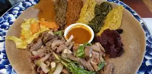 Stopped hy here to get my Ethiopian food fix and was satisfied. Although, I have tasted better, this place was good. Injera was generously provided but was not as soft or tasteful as I have had elsewhere. Ordered the zilzil tibs and vegetarian combo. Those items were delicious. Service was friendly. When you come across this restaurant, you may not realize it is Ethiopian food since it also serves smoothies, ice cream and coffee (a cafe). Nice ambience.