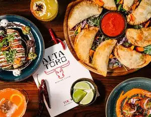 AltaToro was a one of the few restaurant experiences where the food matched the aesthetics!!! The marrying of flavors reflected the balanced pairing of sweet, sour and salt I've only experienced when visiting Central and South America. Our party went with the tapas. Started with guacamole. It was perfect! Lime juice, avocados, salt clearly mixed not mashed for a creamy dip with beveled avocado chunks. The garnish of onion gave a pickled bite. The chip were served tostada style giving us the satisfying experience of snapping our own chips. The flautas stuffed with ahi tuna was plated with crema and black bean puree was gourmet experience and was the perfect herald of freshness and authenticity. Pair it with the seasonal frozen Margarita composed of pomegranate and pineapple. No fruit overpowered the other and delightfully shone through. Next we went with the cerviche and were no disappointed at all! It was served with Leche de trige. The cilantro infused oil provided the herbal zip that slighlty curbed the bright citrus. It was served with crispy thin plantain chips. The dish made us for get we were dining in a landlocked city. The drinks were exceptional. La Llorona -lovely mix of mezcal and aperol with a pleasantly intense smokey finish. Amor Latino- my favorite of the night! A coconut water, lime and tequila elixir not easily replicated I'm sure. We also had steak tar-tar with taro crisps, beef empanandas and patatas bravas. All were splendid! The service was next level. Uriel was well verse in all things AltaToro and guided use throught the resturant's offerings with sincerity. He was the sole reason we opted for desert. The tequila ice cream and coconut bread pudding. The art installation of a wide towering was an event in itself! Every time you took it in you discovered a new detail. The entire experience was delightful. Thanks Yawl!